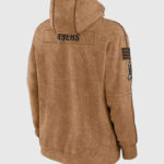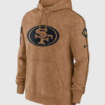 Wear the 49ers Salute To Service Hoodie to show your love for the San Francisco 49ers football team. This hoodie offers a cozy and warm feel and is perfect for chilly game days. The pullover design ensures easy wear, while the hooded collar adds an extra layer of comfort. Featuring full sleeves with rib-knitted cuffs and a spacious pouch pocket. The earthy brown color and fleece fabric give it a versatile appeal. The 49ers Salute to service hoodie is a tribute to both the San Francisco 49ers and the Salute to Service campaign, honoring those who serve.