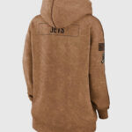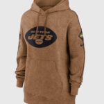 This Aaron Rodgers Jets Salute to Service hoodie pays tribute to the NFL’s Salute to Service initiative. This brown hoodie is a must-have for fans wanting to showcase NFL spirit and is also perfect for fall and winter. Crafted from premium fleece fabric, it offers comfort and warmth with a soft feel. The pullover design features a hooded collar, rib-knitted cuffs, and a pouch pocket to keep your hands warm. You can wear jets brown sweatshirt for game days, casual outings, or layering.
