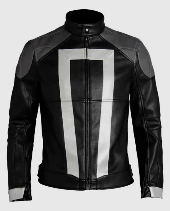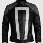 Channel the fierce spirit of Ghost Rider with this leather jacket, inspired by Gabriel Luna’s iconic role as Robbie Reyes the popular tv show Agents of Shield. Crafted from high-quality sheepskin leather and lined with soft viscose for lasting comfort, this jacket is designed to make a bold statement. It features a sleek black color, a snap-tab collar, and a front zipper closure that gives it a sharp look. The long sleeves are finished with silver zipper cuffs, while the striking white patch on the front adds a unique, signature touch.