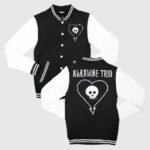 Channel the spirit of punk rock with the American rock band Alkaline Trio Varsity Jacket. This jacket blends classic varsity with the band’s signature dark vibe. Crafted from wool blend fabric and leather sleeves. The soft viscose lining offers exceptional comfort for all-day wear. The button-style front closure and rib-knitted collar, cuffs, and hemline give it a traditional varsity feel, while the full-length sleeves provide a snug fit. Multiple pockets are given for good storge. Designed in a timeless black and white color scheme with white stripes and features an embroidered heart-and-skull emblem on the chest.