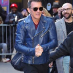 Antonio Banderas Slim Fit Blue Motorcycle Leather Jacket