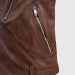 The beast spanish brown biker leather jacket is a perfect blend of style and attitude, making it a must-have for any wardrobe. Made from premium sheepskin leather, it offers durability and a soft viscose lining for comfort. The asymmetrical zipper closure and wide lapel-style collar add a bold biker touch, while the long sleeves with zipper cuffs ensure a sleek fit. The rich spanish brown color goes well with blue jeans and a black tee for a classic biker look or a sweater for a more polished outfit.