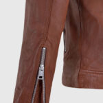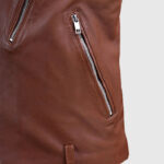The men’s beast tan leather jacket is a bold fusion of classic biker style and modern sophistication. Crafted from premium sheepskin leather, it offers both durability and a luxurious feel, while the soft viscose lining ensures all-day comfort. The asymmetrical zipper closure and wide lapel-style collar add a rebellious edge, making it a standout piece in any wardrobe. Moreover, the rich tan-brown colour makes it a versatile choice that pairs effortlessly with jeans and a white tee for a biker look or dark chinos and boots for more polished, urban vibes.