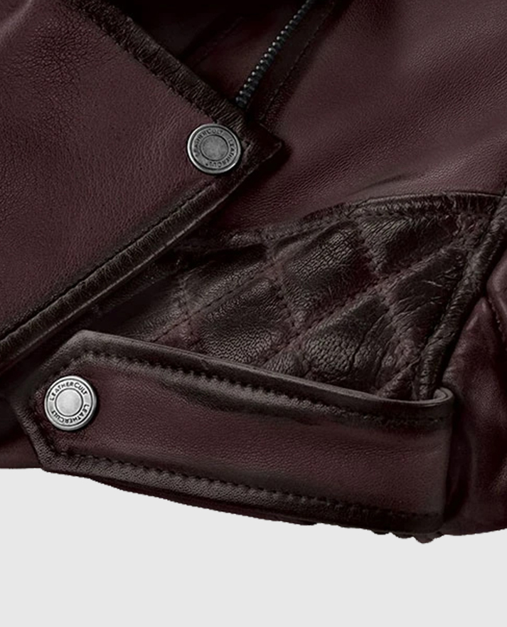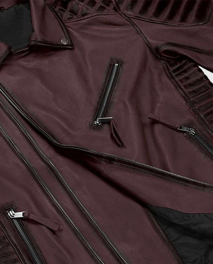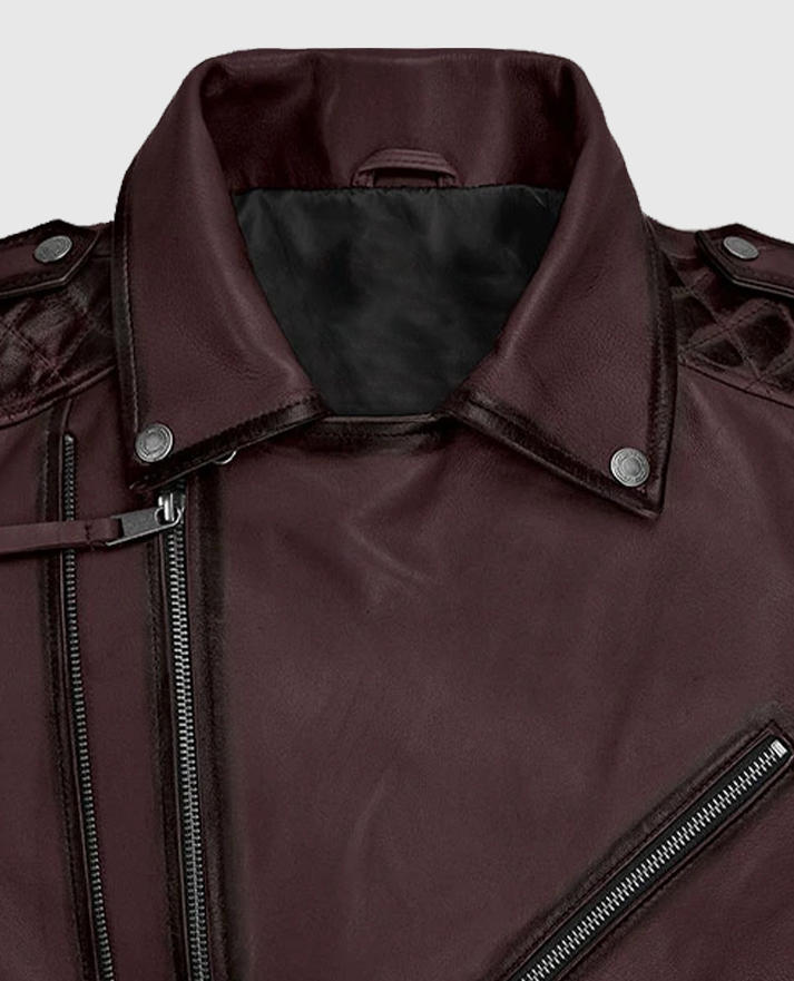 Shuffle the viewers’ eyes with an incredibly trendy glance of your magnificent look by wearing the charles burnt wine leather Jacket. Crafted from premium sheepskin leather with a soft viscose lining, it ensures warmth and comfort all day long. The asymmetrical zipper front, wide lapel collar, and full-length sleeves with zipper cuffs add a touch of edgy sophistication. The rich wine color exudes elegance, making it a must-have for anyone looking to stand out in the fashion world.