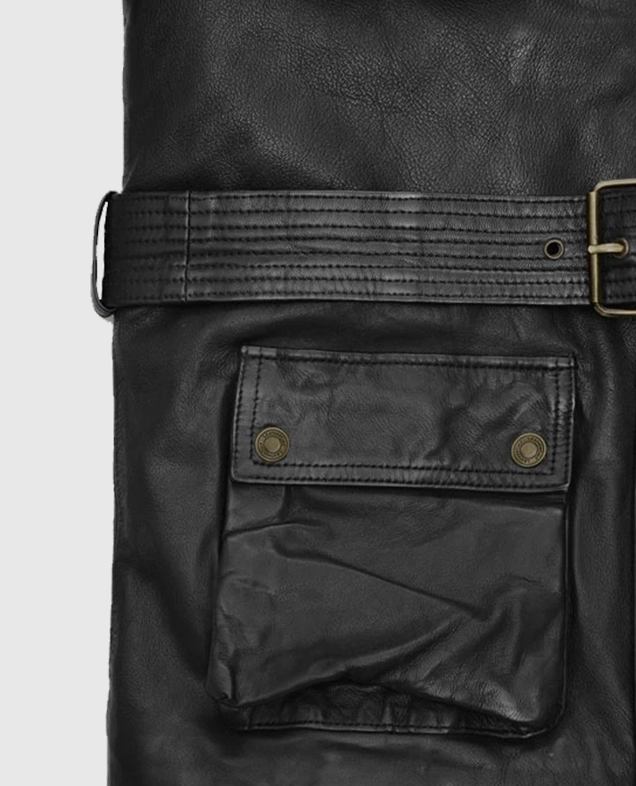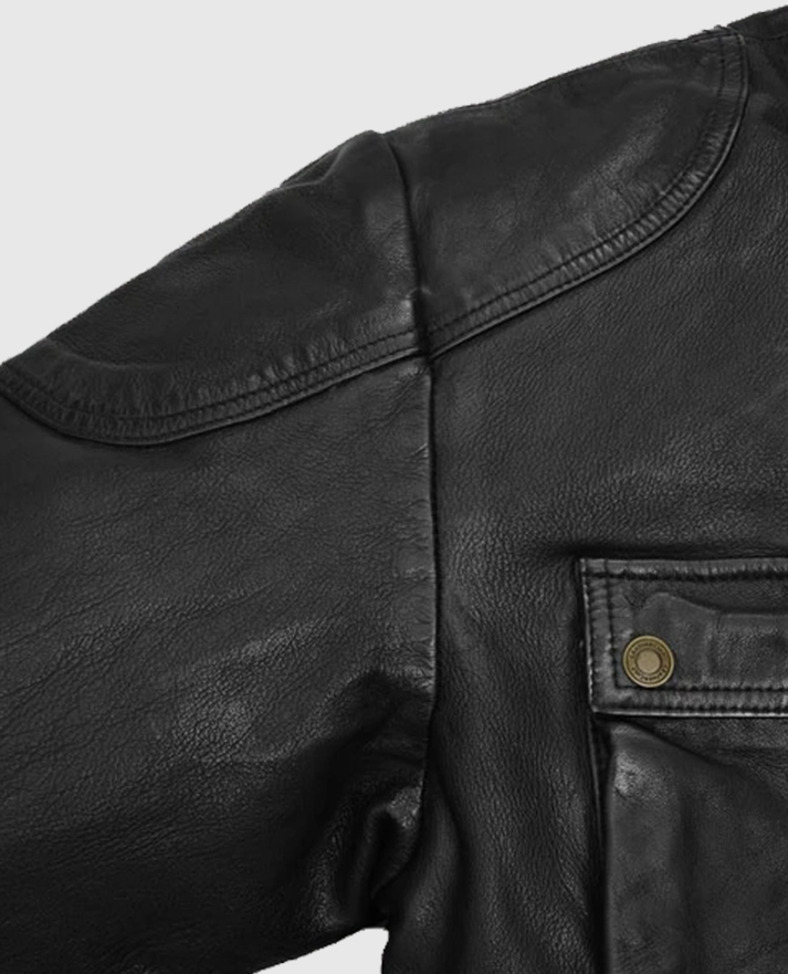 This Benjamin Button Leather Jacket is a timeless piece inspired by Brad Pitt’s classic style in the 2008 fantasy drama film. Made from premium sheepskin leather, this jacket offers a sophisticated yet rugged appeal. The zipper-over buttoned closure with a belted waist enhances its structured fit, while the stand-up collar and long sleeves with button cuffs add a refined touch. Designed in classic black, this jacket brings a vintage charm with modern versatility, making it a standout addition to any wardrobe.