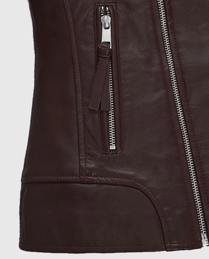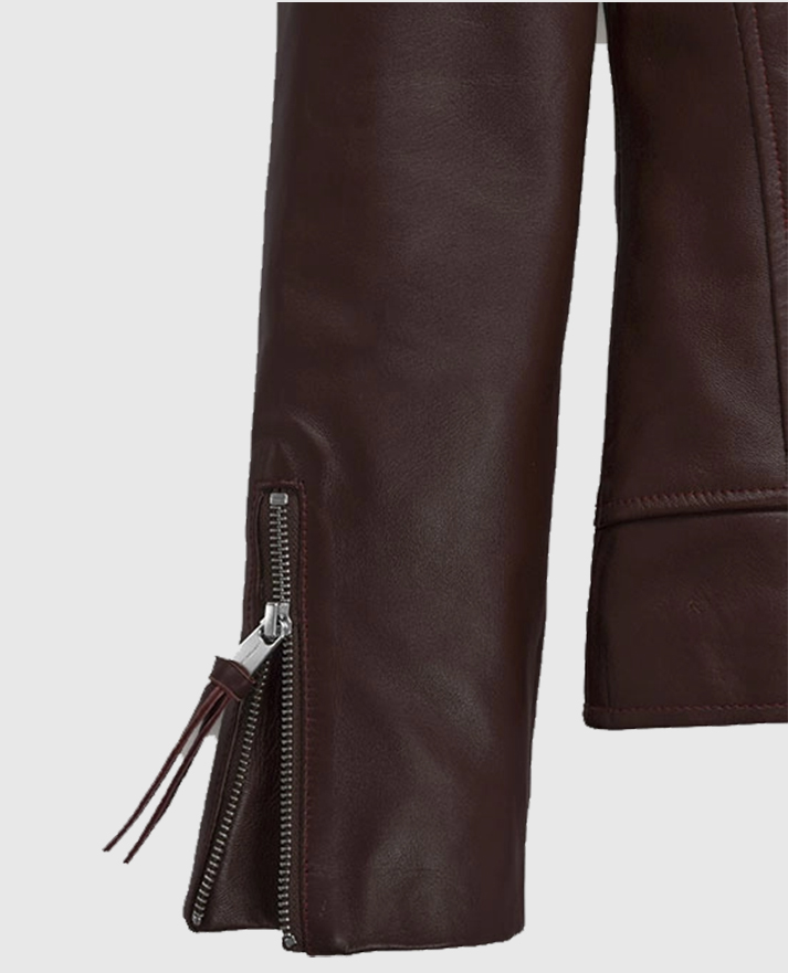 Make a fierce style statement with this burgundy leather jacket inspired by Megan Fox’s character April O’Neil in the movie Teenage Mutant Ninja Turtles 2. Crafted from sleek sheepskin leather and lined with soft viscose, this Burgundy Ninja Turtles 2 Megan Fox Jacket delivers both attitude and comfort. Its asymmetrical front zipper closure and wide notch lapel collar bring classic biker edge, while the deep burgundy tone adds a bold, modern twist. Full-length sleeves feature zipper cuffs with pullers for extra flair, and two practical side zipper pockets keep your essentials secure. Perfect for movie-inspired streetwear or edgy everyday looks.