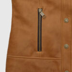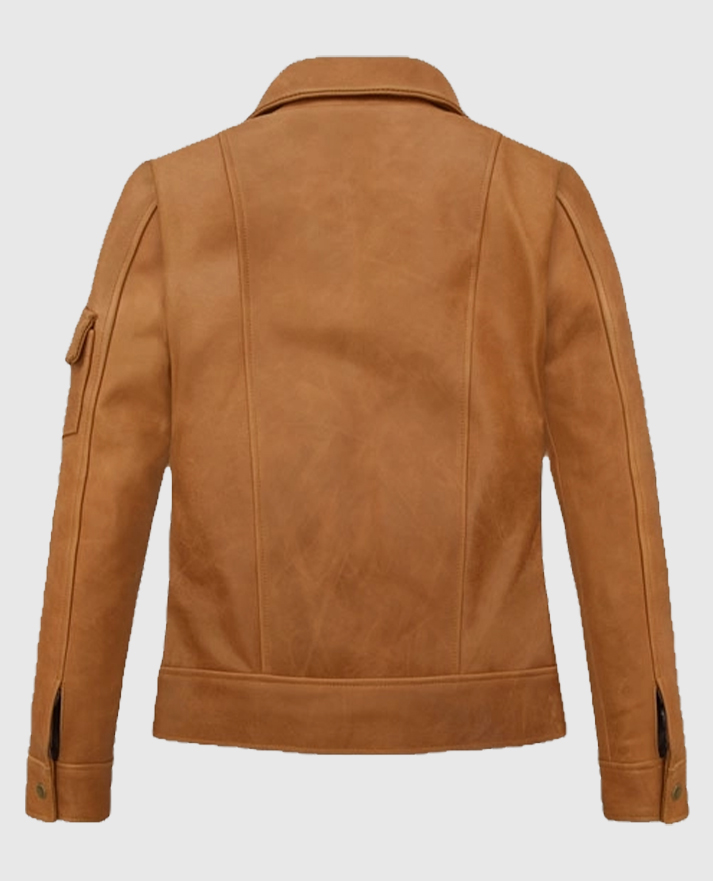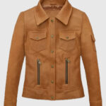 Strike the perfect balance between rugged and refined with the Women’s Gigi Hadid Canberra Tan Brown Utility Leather Jacket. Inspired by the supermodel’s off-duty street style, this jacket is crafted from high-quality sheepskin leather in a rich tan hue. The design features a classic shirt-style collar, secure button-front closure, and full-length sleeves with button cuffs for a timeless silhouette. With four functional pockets at the front and an additional sleeve pocket, it brings both practicality and urban edge. Whether layered over denim or paired with neutrals, this jacket adds structured sophistication to your everyday lineup.
