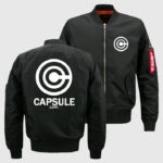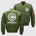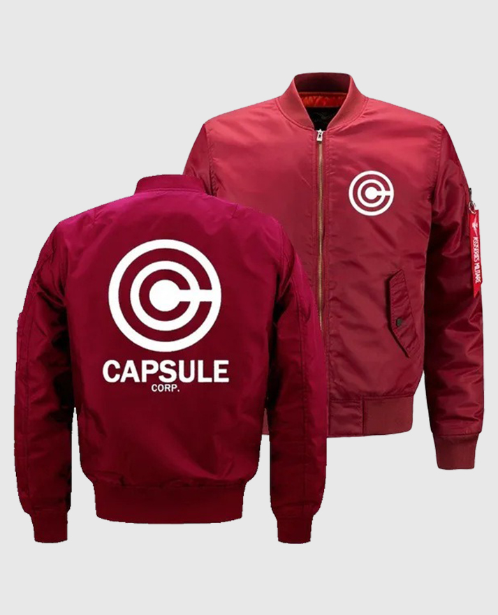 Unleash your inner Saiyan with this Capsule Corp Bomber Jacket, inspired by the Japanses animated series Dragon Ball universe. Crafted from premium satin fabric with its soft viscose lining. The rib-knitted collar, cuffs, and hem enhance the classic bomber silhouette, while the front zipper closure provides easy wearability. Featuring the bold Capsule Corp logo on the chest and back, this jacket is perfect for anime fans. Equipped with two outside and two inside pockets. Available in black, red, green, and blue, this jacket is a must-have statement piece for any wardrobe.