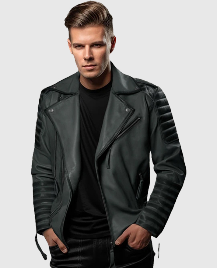 Charles Burnt Charcoal Leather Jacket
