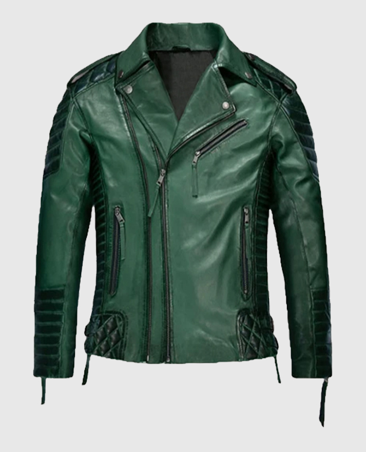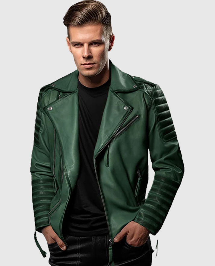 Upgrade your casual wardrobe with the charles burnt biker leather jacket. Made from premium sheepskin leather and lined with smooth viscose, it offers unmatched comfort and durability. The jacket features an asymmetrical zipper closure, a wide lapel collar, zipper cuffs, and practical pockets for everyday essentials. Its bold green color adds a bold yet versatile touch to your outfit. You can pair it with jeans and a plain white tee for an effortlessly stylish look.
