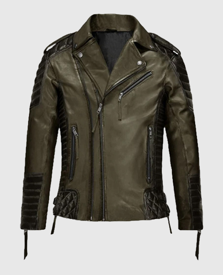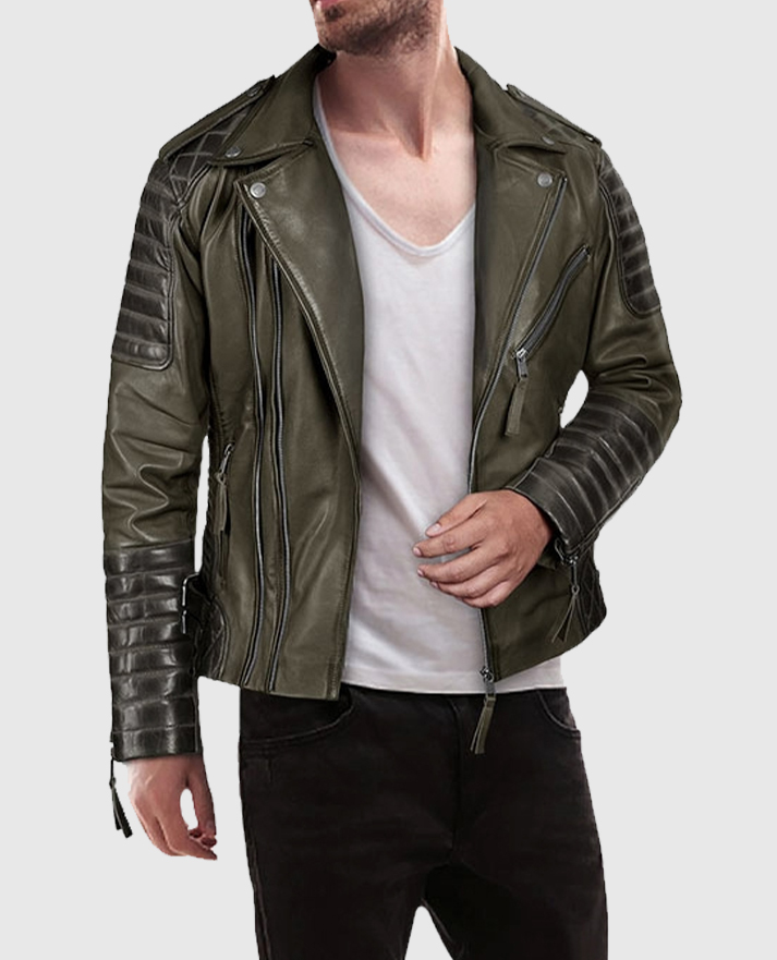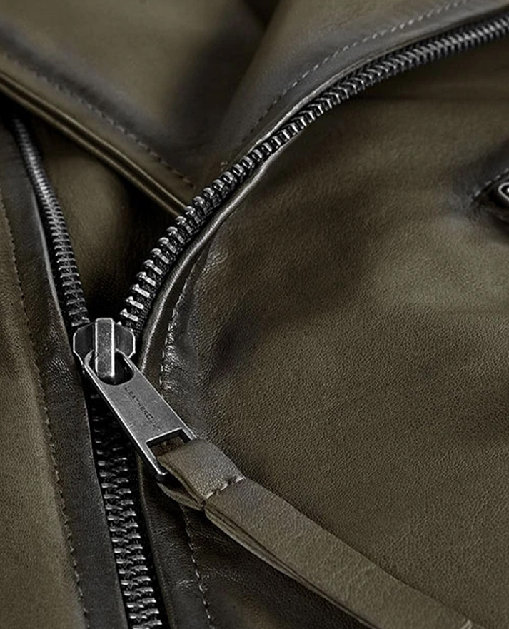 With this Charles Burnt Olive Leather Jacket, make your looks more dashing as you walk among others. The superb design of this jacket will give you a modern and aesthetic touch that everyone will love. More than that, this jacket’s exquisite features and super-durable fabric will take your style to the next level. This amazing biker jacket is fabricated from high-quality sheepskin leather. The jacket also consists of a viscose lining that is stitched inside to keep you comfortable and relaxed. In addition, this jacket’s characteristics include a lapel style collar, zipper cuffs, and an asymmetrical front zip fastening.