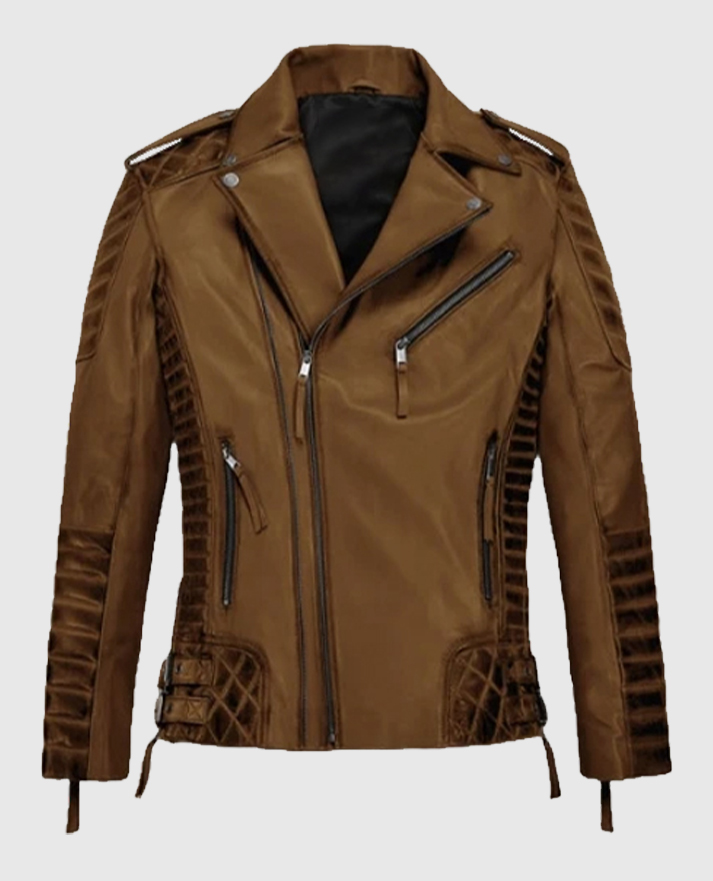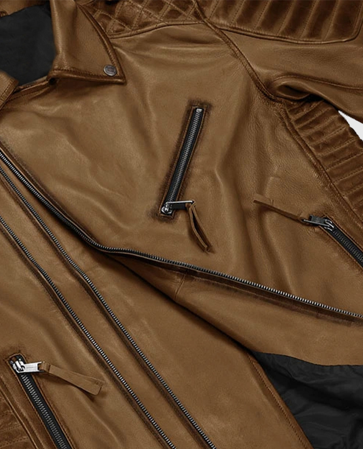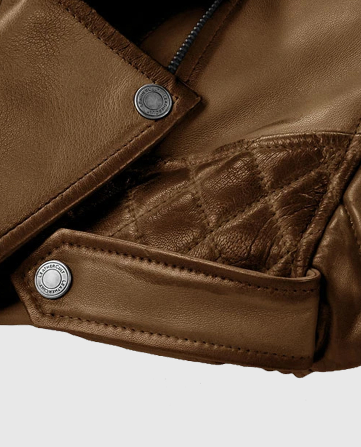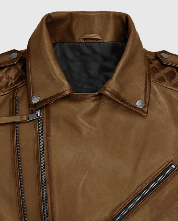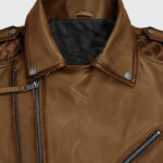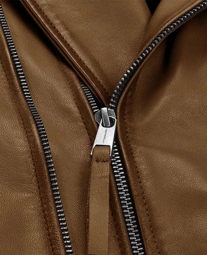 Make a bold statement with the men’s burnt tan sheepskin leather jacket, a perfect mix of style and attitude. Crafted from premium Sheepskin leather, it offers durability and a sleek finish, while the viscose lining ensures comfort. The asymmetrical zip closure and wide lapel collar bring a biker look, complemented by long sleeves with zipper cuffs for an edgy touch. Functional zipper pockets add both style and convenience. Pair it with black jeans and a white tee for a timeless biker vibe or wear it over a sweater and chinos for a smart-casual look.