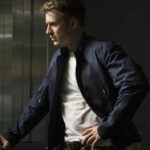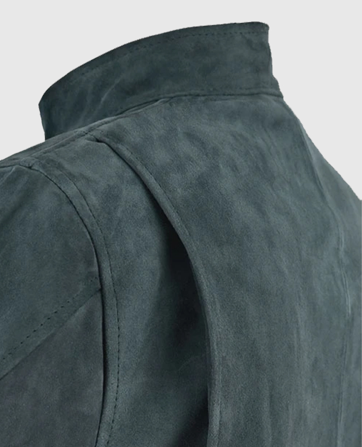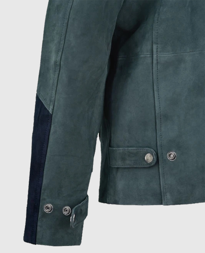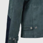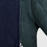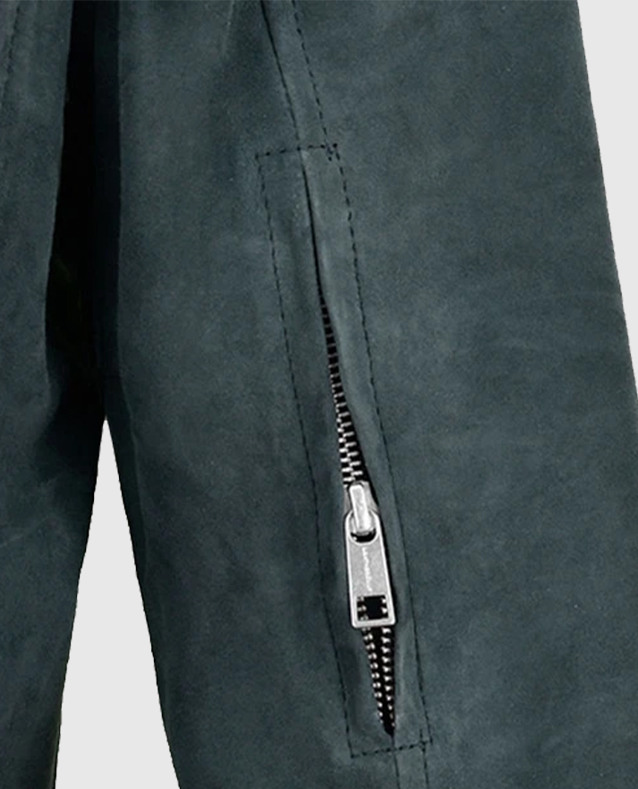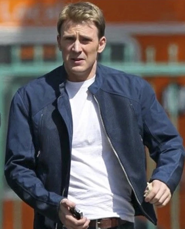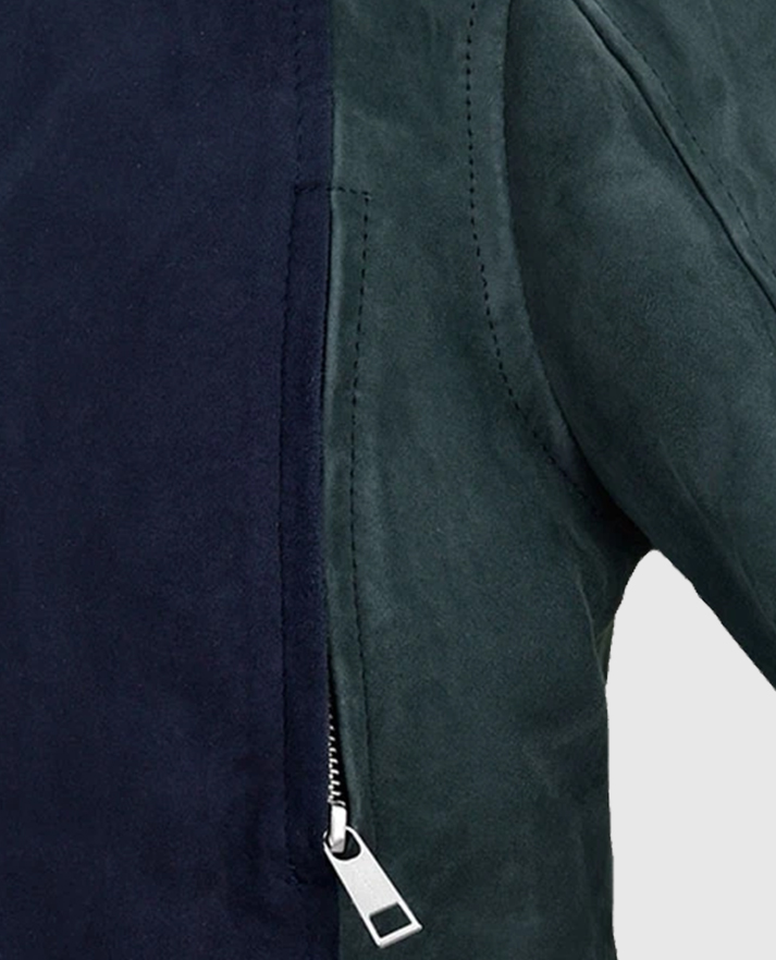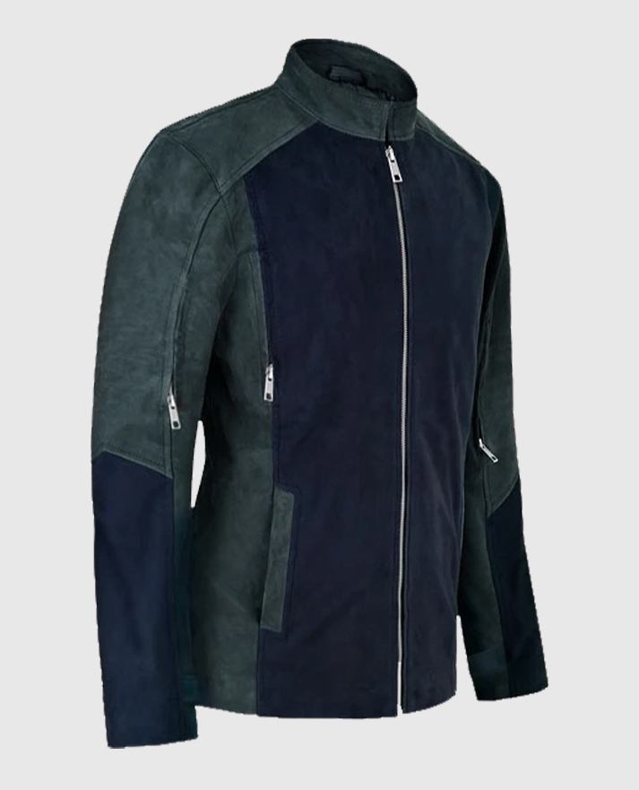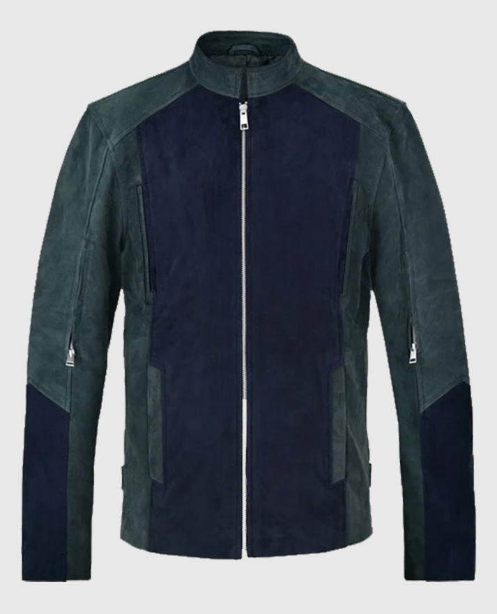 This Captain America-inspired leather jacket is a perfect replica of the one worn by Chris Evans as Steve Rogers in Captain America: The Winter Soldier. Made from premium sheepskin leather, it features a deep green and navy blue color scheme, a stand-up collar, and full-length sleeves with open hem cuffs for a sleek, modern look. The zipper closure and two side pockets add both functionality and style, making it ideal for casual outings or themed events. so, channel the heroic charm of Captain America and make a bold statement with this iconic piece.