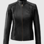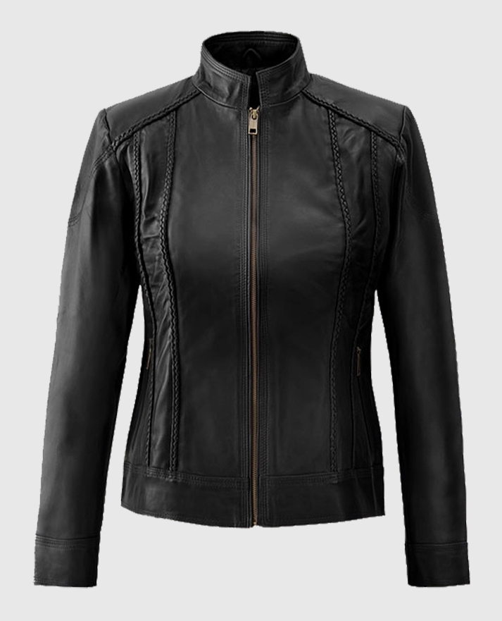 The Black Clova Leather Jacket is where craftsmanship meets elegance. Designed in rich black sheepskin leather. This piece flatters with contoured seams and subtle braided detailing. The stand-up collar adds structure, while the full-zip front and minimalist zipper pockets keep it polished and practical. Full-length sleeves with round cuffs for full coverage and a streamlined appearance. Its soft viscose lining ensures smooth wear from day to night. Whether layered over a blouse or a fitted tee, Clova brings quiet confidence and sharp refinement to every look.