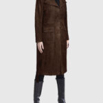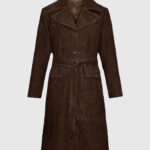 Want to steal a show like a charming diva? If so. Then this tremendous women’s suede alpine coat is the best option for you to update your wardrobe collection. Crafted from high-quality suede leather, offering a soft and smooth texture. Besides featuring a wide lapel collar and a button closure, this long coat effortlessly blends style with functionality. Designed with full-length sleeves and neatly tailored round cuffs, it showcases a polished and refined look. The deep dark brown shade enhances its versatility, making it an ideal choice for any occasion.