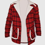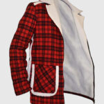 Inspired by the 2016 American superhero film Deadpool’s Wade Wilson character played by Ryan Reynolds. This stylish checkered outerwear replicates Wilson’s rugged yet bold look in the movie. Crafted from high-quality cotton flannel and soft shearling lining to provide warmth during colder months. The deadpool movie jacket features a notch lapel shearling collar, zipper closure, and rounded cuffs with two outside and two inside pockets. The red and black checkered pattern and shearling design on pockets and shoulders stay true to Deadpool’s signature style. It’s an ideal choice for casual outings, cosplay events, or winter layering.