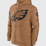The Eagles brown hoodie is a must-have for dedicated football team Philadelphia Eagles. Crafted from soft fleece fabric and featuring a hooded collar, full-length sleeves with rib-knitted cuffs, and a spacious pouch pocket for convenience. The distressed brown color gives it a vintage appeal, while the iconic Eagles logo on the front and additional sleeve details showcase team pride. Perfect for game days, casual wear, or layering in cooler weather, it pairs effortlessly with jeans, joggers, or athletic gear for a sporty, laid-back style.