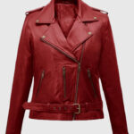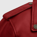 This cherry red leather jacket captures the quirky charm and fearless heart of Emilia Clarke’s look as Kate in the film Last Christmas. If you want all the people to look your way, this jacket is a way to make a bold and remarkable statement. Made from premium sheepskin leather and lined with soft viscose to bring comfort and cool-girl confidence. The asymmetrical zip front, wide notch lapels, shoulder epaulets, and belted waist lend a classic biker edge, while zippered cuffs and sleek pockets add a modern touch. Pair it with black skinny jeans, ankle boots, and a cream sweater for that cozy-chic winter vibe. Add a red lip for that extra spark.