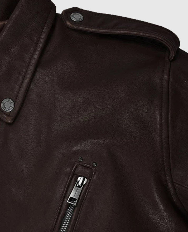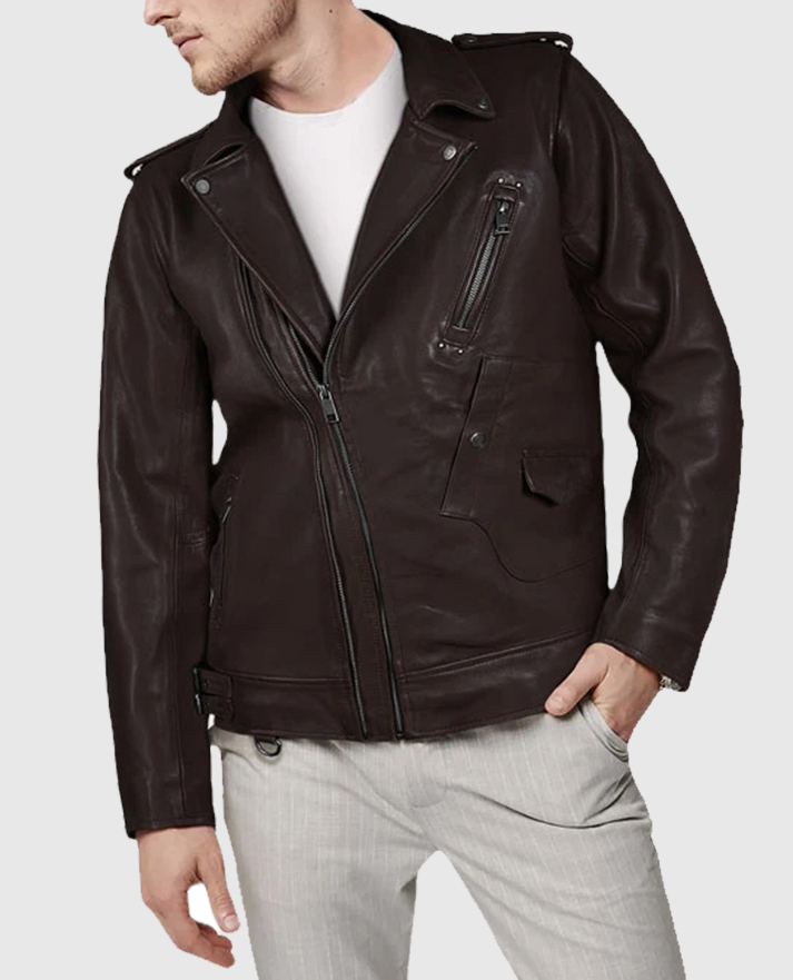 Stay ahead of fashion trends with the men’s falcon brown leather jacket, a timeless piece combining classic biker style and modern flair. Made from premium sheepskin leather, it features an asymmetrical zipper closure, a wide lapel collar, and long sleeves with zipper cuffs for a sleek, edgy look. The soft viscose lining ensures comfort, while multiple pockets add practicality. The rich brown color makes it a versatile choice for those who want to make a statement with confidence and style.