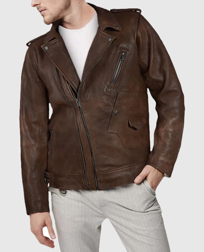 Take your personality to the next level with this jaw-dropping falcon spanish brown Biker leather jacket, which gives you everything you want to grab everyone’s attention. As you can see, the jacket is a combination of exquisite fabric, unique design, and outstanding style. However, its classic brown tone gives it a modern touch that no one can resist. Further, the asymmetrical zipper closure and wide lapel-style collar make it more appealing and perfect.