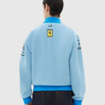 Embrace the thrill of Formula 1 with the Ferrari Blue Bomber jacket, a tribute to the high-speed world of motorsports and inspired by the Miami Grand Prix. This cool bomber jacket ensures warmth and comfort due to its premium wool fabric and soft polyester lining. The rib-knitted collar, cuffs, hemline, and button-up front closure, and multiple pockets make this ferrari miami jacket practical yet functional. It also features the iconic Ferrari logo alongside sponsor patches. Pair it with black jeans and sneakers for a casual yet refined look or layer it over a Ferrari-themed tee for the ultimate race-day ensemble.