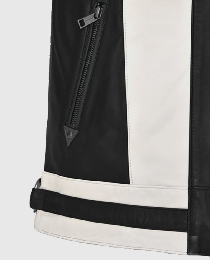 Channel the timeless style of Ferris Bueller’s Day Off with this iconic leather jacket, inspired by Matthew Broderick’s iconic character, Ferris Bueller. This jacket is crafted from premium sheepskin leather, ensuring durability and a glossy finish. It features a zipper closure, a rib-knitted collar, and long sleeves with rib-knitted cuffs for a sleek, comfortable fit. The multi-color design combining beige, black, and off-white adds a classic yet bold touch. Practical details like two side pockets and one chest pocket make it both stylish and functional. Whether you’re hiking, biking, or just making a statement, this jacket is the perfect choice for any adventure.