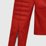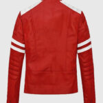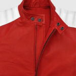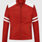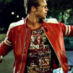 Get the iconic look of Tyler Durden from Fight Club with this stylish leather jacket inspired by Brad Pitt’s legendary character. This replica jacket features a bold red and white design, with white sections on the shoulders, stripes on the sleeves, and multiple quilted stitched accents for added detail and edge. Made from premium sheepskin leather, it’s durable and sleek, while the soft viscose lining ensures comfort and warmth. The jacket includes a zipper closure, a snap-tab collar, and full-length sleeves with zipper cuffs for a polished fit. Two chest pockets add a practical touch, making it functional and fashionable. So, channel the rebellious spirit of Tyler Durden and make a bold statement with this iconic piece.