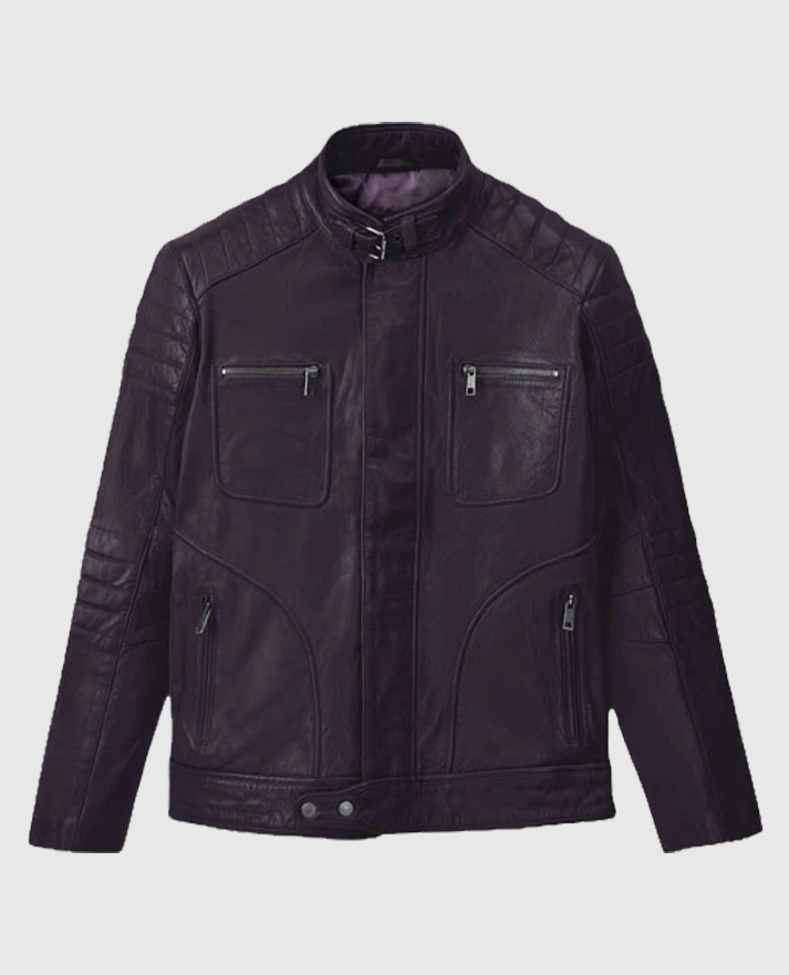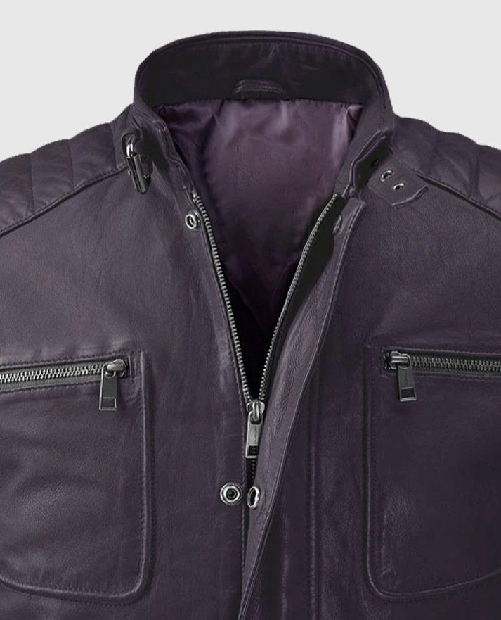 Rev up your style with the firefly moto purple leather jacket, a bold statement piece crafted from premium sheepskin leather with a sleek viscose lining for all-day comfort. Designed with a zipper-over-button closure and a stand-up collar with a buckle, this jacket delivers a rugged yet sophisticated edge. The full sleeves with open hem cuffs ensure a relaxed fit, while the chest and side pockets add functionality without compromising style. The striking purple hue makes it a standout choice. Pair it with jeans and a white tee for a sleek contrast, or layer it over a hoodie for a street-style vibe.