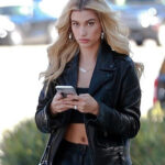 Hailey Baldwin Bieber Black Biker Leather Jacket