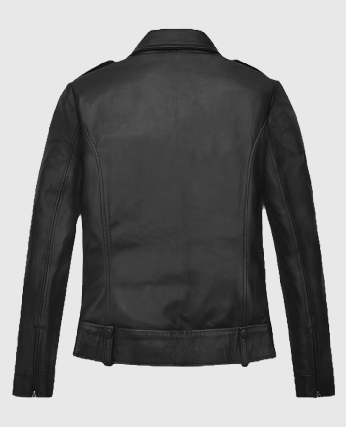Strike a perfect balance between modern chic and edgy attitude with the Women’s Hailey Black Biker Leather Jacket. Inspired by the streetstyle fashion of Hailey Baldwin Bieber. Crafted from pure sheepskin leather and lined with soft viscose. The asymmetrical front zipper closure and lapel collar lend a sharp, structured look, while the full-length sleeves with zippered cuffs add biker flair. Featuring three functional pockets, this sleek black piece is your go-to for everyday cool or an elevated night-out statement.