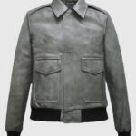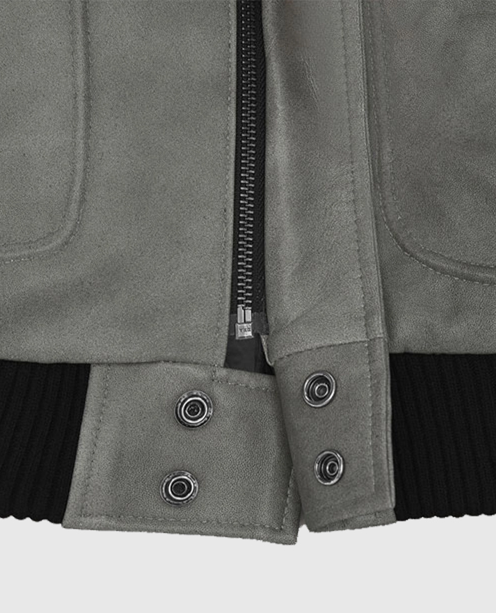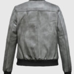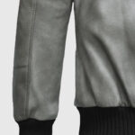 Gray Bomber Leather Jacket for Women