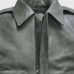 Channel understated cool with the Women’s Gray Bomber Leather Jacket. Inspired by the effortlessly stylish Kendall Jenner look. This sleek piece is crafted from premium sheepskin leather in a versatile gray tone. The clean shirt-style collar and concealed front zipper give it a minimal, structured look, while rib-knit cuffs and hem bring that classic bomber edge. Designed with two roomy front flap pockets and a soft viscose lining, it merges functionality with a street-style vibe.