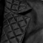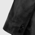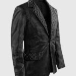 Adopt a stunning and dapper look with the men’s harper leather blazer, the ultimate choice for fashion-forward men. Crafted from premium sheepskin leather, offers style and comfort, making it a reliable addition to your wardrobe. The soft viscose lining ensures a cozy fit, while the single-breasted button closure and unique quilted lapel-style collar add a bold, sophisticated touch. Complete with long sleeves and open cuffs, this blazer is available in a classic black tone, perfect for elevating any outfit. Whether for a formal event or a stylish evening out, the Harper Leather Blazer delivers a sharp, head-turning appearance