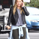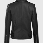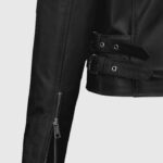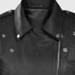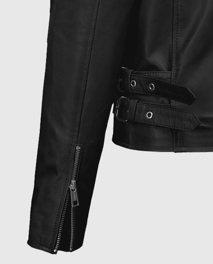 This black leather jacket takes cues from Hilary Duff’s downtown-chic aesthetic when spotted in Beverly Hills. Crafted from rich sheepskin leather and lined with soft viscose, it balances comfort with sharp styling. The asymmetrical front zipper, notch lapels, and classic moto detailing bring bold energy, while side buckle straps and zipper cuffs add that street-ready finish. With a tailored fit and practical zipper pockets, this jacket is made for everyday rebels who like their wardrobe to whisper confidence, not scream for it.