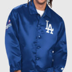 This Ice Cube LA Dodgers Jacket is a bold tribute to both hip-hop culture and baseball heritage. Worn by American rapper and songwriter Ice Cube Crafted in the World Series Games at Dodgers Stadium. The premium satin fabric offers a sleek finish and soft viscose lining offers comfort. The snap-tab button closure and shirt-style collar add a classic touch. Designed with long sleeves and multiple pockets. The iconic blue color and white team logo reflects the spirit of the LA Dodgers. It is a must-have for fans of Ice Cube and the legendary team.