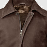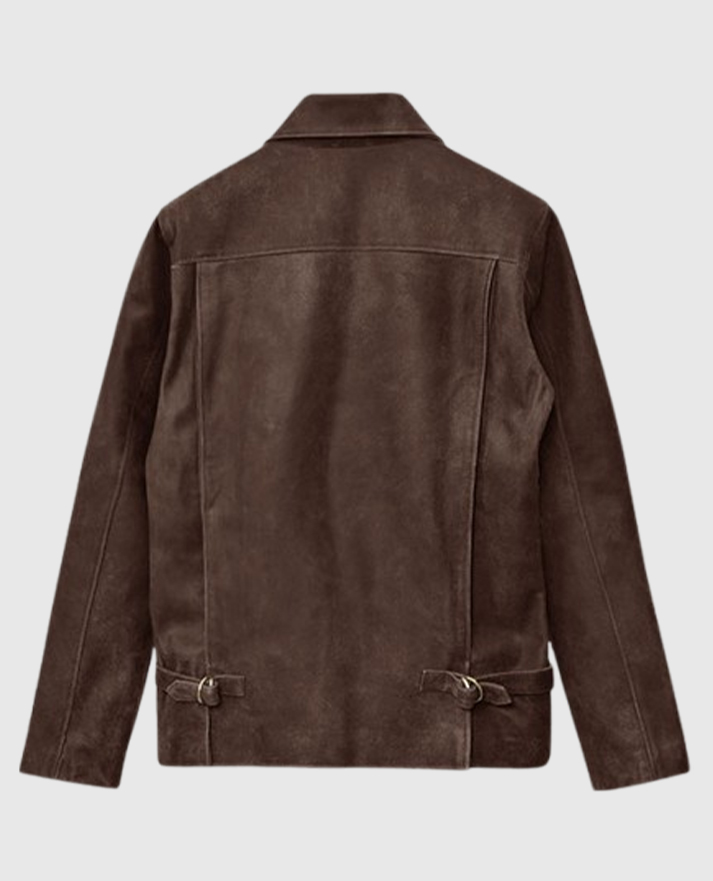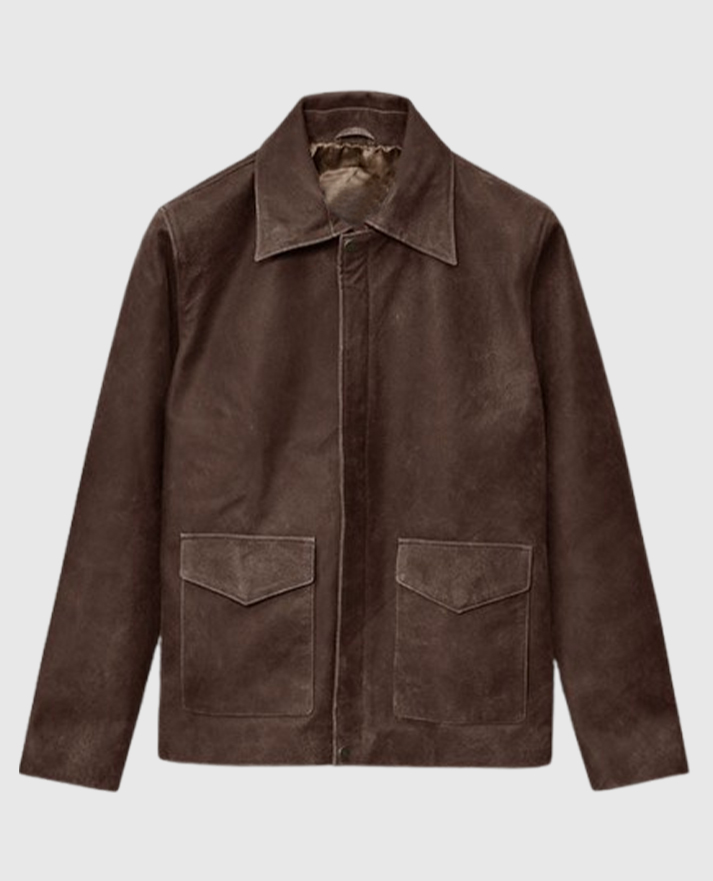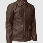 This vintage brown suede leather jacket was worn by Harrison Ford in the action-adventure film Indiana Jones. Crafted from high-quality pure suede leather and lined with soft viscose lining. It features a secure zipper closure with button detailing, a classic shirt-style collar, full-length sleeves with open hem cuffs, and two practical external pockets. The rich vintage brown color and rugged design capture the iconic look of the legendary archaeologist. Pair indiana jones leather coat with jeans and a fedora for the full Indiana Jones effect.