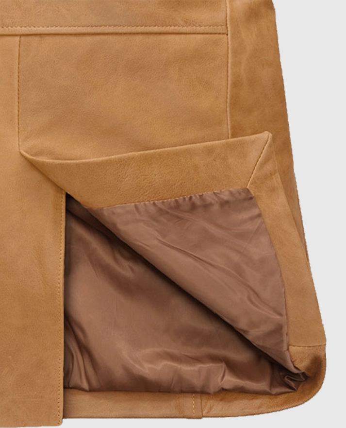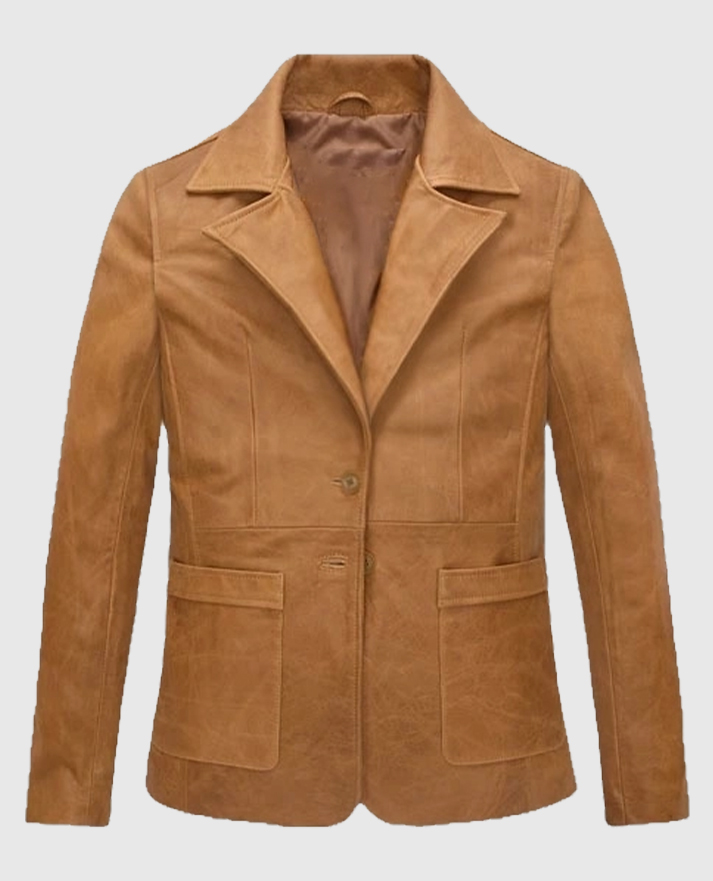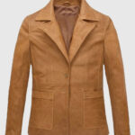 Bring back the 90s charm with a blazer that defines effortless style. Inspired by Jennifer Aniston’s iconic character Rachel Green from Friends Season 5, this beige leather blazer captures timeless sophistication with a modern twist. Made from high-quality sheepskin leather and lined with soft viscose, it features a notch lapel collar, two-button front closure, and full-length sleeves with round cuffs. You can pair it with a fitted top and black jeans for a Rachel-approved look that’s perfect for casual outings, brunch dates, or even a stylish workday ensemble.