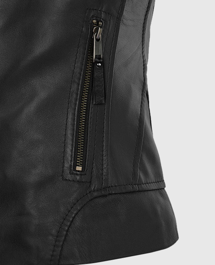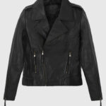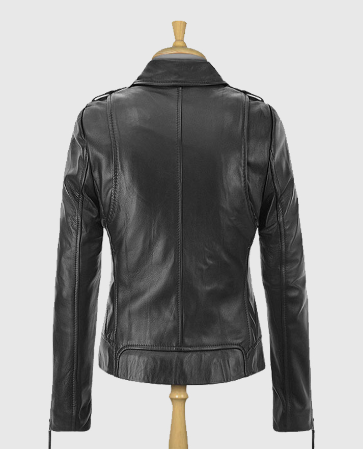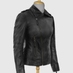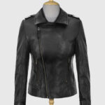 Channel Jennifer Aniston’s effortless cool with this classic black biker leather jacket. She was seen wearing this jacket while leaving Wanderlust movie set. Crafted from supple pure sheepskin and lined with soft viscose for comfort, it features an edgy asymmetrical zipper closure, notch lapel collar, full-length sleeves with stylish zipper cuffs, and two practical external pockets. All the zippers come with pullers. This versatile ladies black leather jacket adds a touch of rock-and-roll chic to any outfit. Pair it with jeans and a tee for a casual look, or dress it up with a skirt and heels for a night out.