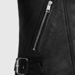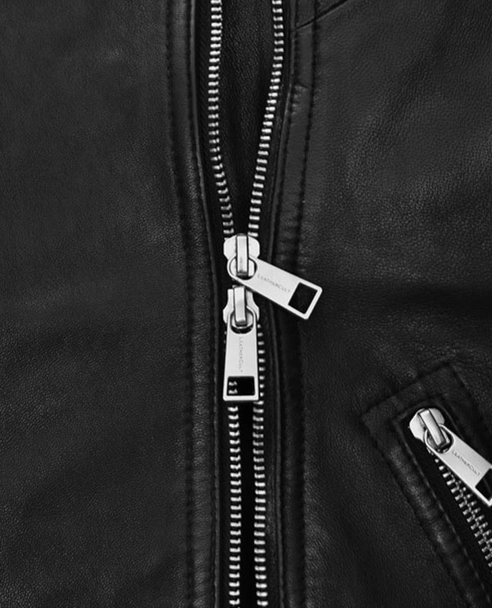 This black leather jacket captures the poise and power of Kate Parks as Jodie Comer in psychological thriller series Doctor Foster (2015-2017). Crafted from premium sheepskin leather and lined with soft viscose, it delivers high-end comfort with a sleek silhouette. The asymmetrical zipper, sharp snap-tab collar, and epaulet shoulders add subtle drama, while zipper cuffs and adjustable side buckles hint at quiet rebellion. Layer it over a satin blouse and tailored trousers for boardroom confidence, or throw it over a fitted tee and boots for casual control with an edge.