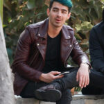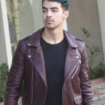 American Singer Joe Jonas Maroon Biker Leather Jacket