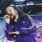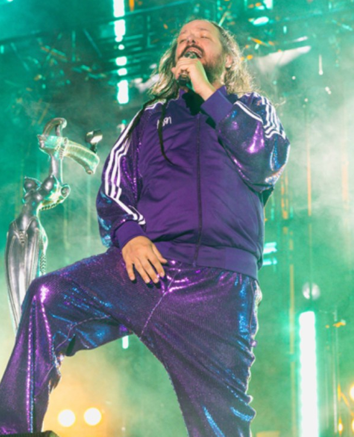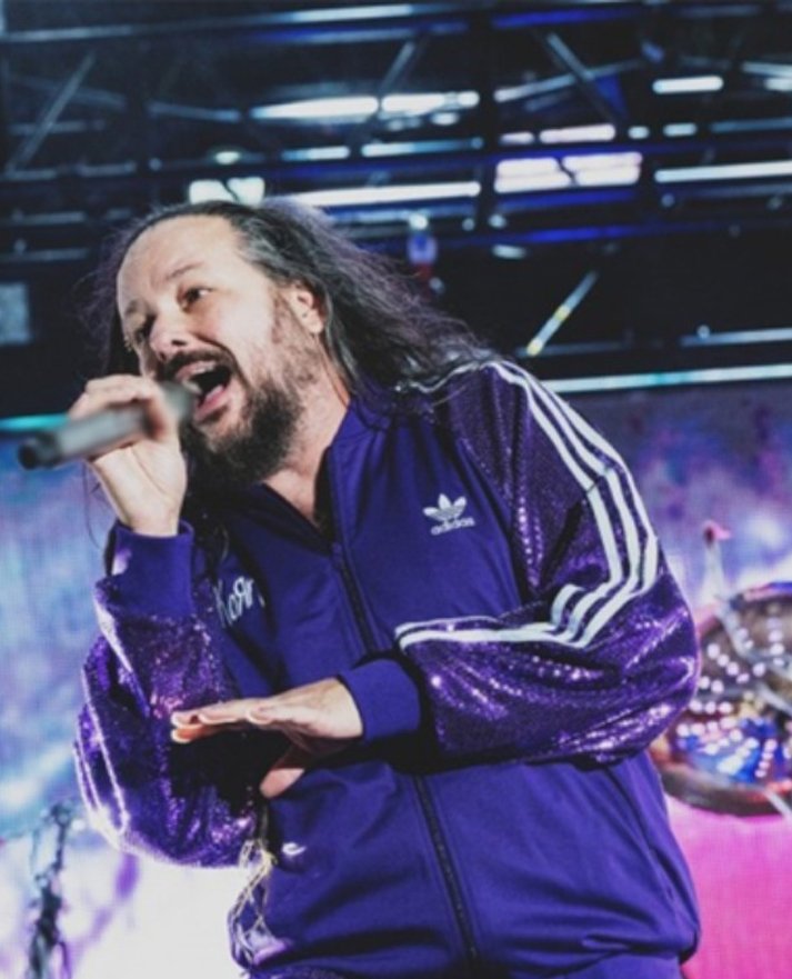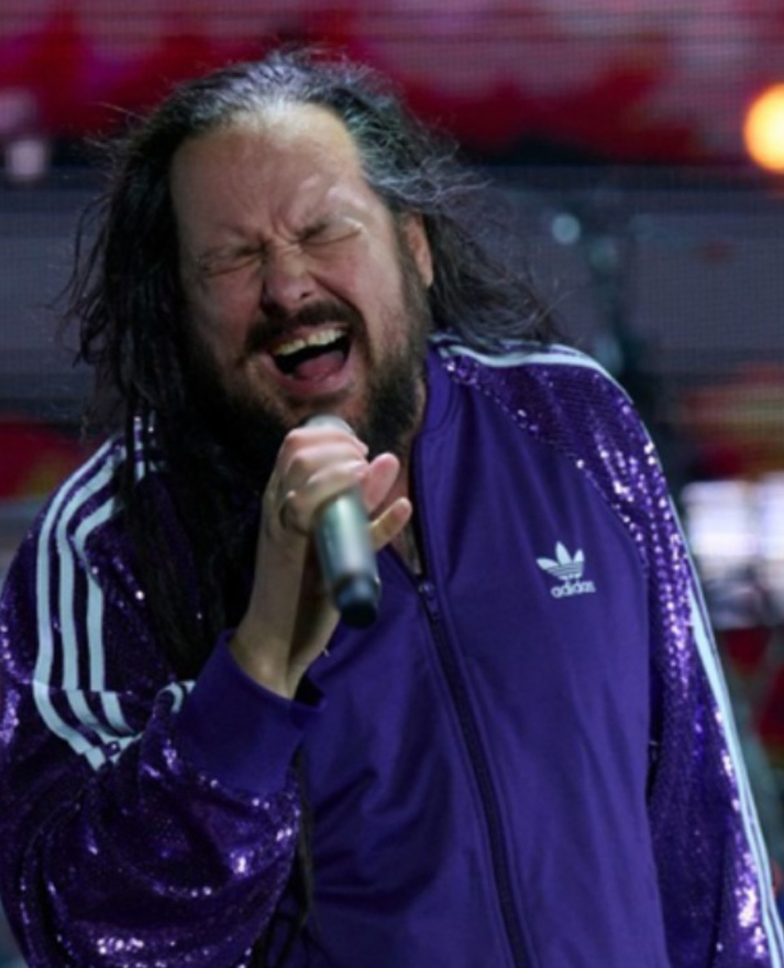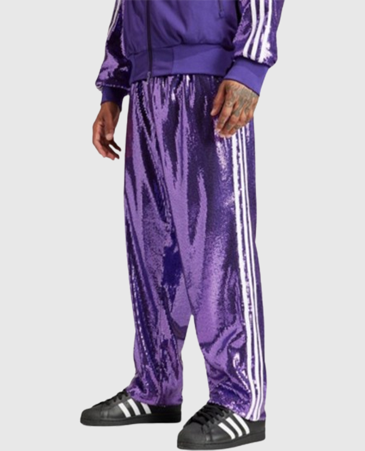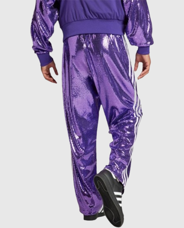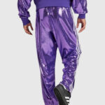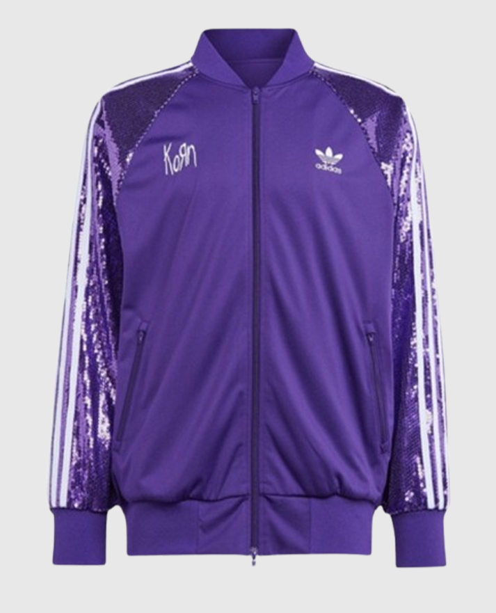Rock your style in this striking purple tracksuit inspired by the legendary American singer and songwriter Jonathan Davis. He wore this tracksuit during the stage performance of the two iconic brands’ collaboration Korn and Adidas. Jonathan Davis’s purple tracksuit blends fleece and sequin fabric and features a rib-knitted collar, long sleeves with white stripes, and a smooth zipper closure. Meanwhile, the soft viscose lining adds extra comfort. Complete the look with the matching sequin trousers equipped with two side pockets. Perfect for concerts, parties, or anyone looking to channel a high-energy, stage-ready aesthetic.