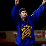 The Justin Bieber NHL All-Star Jersey is a must-have for hockey and Bieber fans. Justin Bieber was seen wearing this NHL jersey in the stadium with blue jeans and a black cap. This Jerseys is made with a premium fleece fabric and features a pullover closure, round-style collar, long sleeves and open hem cuffs. It delivers both style and ease of movement. Featuring a vibrant mix of blue, white, red, and yellow. This jersey is a bold statement piece for fans looking to channel Bieber’s signature streetwear vibe.