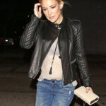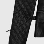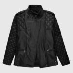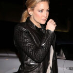 Love effortless fashion with a bold twist This black leather jacket inspired by American actress Kate Hudson is perfect for you. Made from high-quality sheepskin leather, it features an asymmetrical zipper closure with a button strap, a snap-tab collar, and full-length sleeves with zipper cuffs for a clean, edgy look. The quilted detailing on the sleeves and shoulders adds stylish texture, while the side waist zipper pockets keep it practical. Whether heading out for a casual day or night, this jacket brings confidence and calm to any outfit.