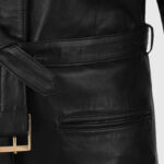 Looking for a stylish way to brave the cold? This Katherine Waterston-inspired leather long coat is the perfect investment for those freezing days. Inspired by her role as Tina Goldstein in Fantastic Beasts. However, this coat is crafted from real sheepskin leather for durability and warmth. It features a button closure, a wide-spread collar, and full-length sleeves with round cuffs and button straps for a polished look. With two external side waist pockets and two inner pockets, it’s as functional as it is fashionable. Elevate your winter wardrobe with this classic black leather coat and embrace timeless elegance.