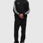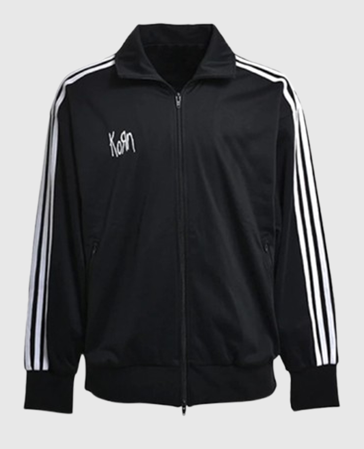 This Korn black tracksuit is a must-have for fans of the legendary nu-metal band and is inspired by the band’s signature Adidas aesthetic from the ’90s and early 2000s. Crafted from high-quality fleece fabric and features zip-up front closure, shirt-style collar, rib-knit cuffs and hemline, with two external pockets. The matching trousers offer a relaxed fit and include two side pockets. With Korn printed logos and striped designs on the sleeves, this tracksuit is perfect for casual wear, jogging and gyming. Korn adidas track suit pairs effortlessly with chunky sneakers or boots. Order this tracksuit now and let your nu-metal spirit shine!