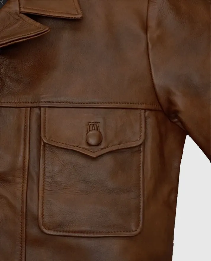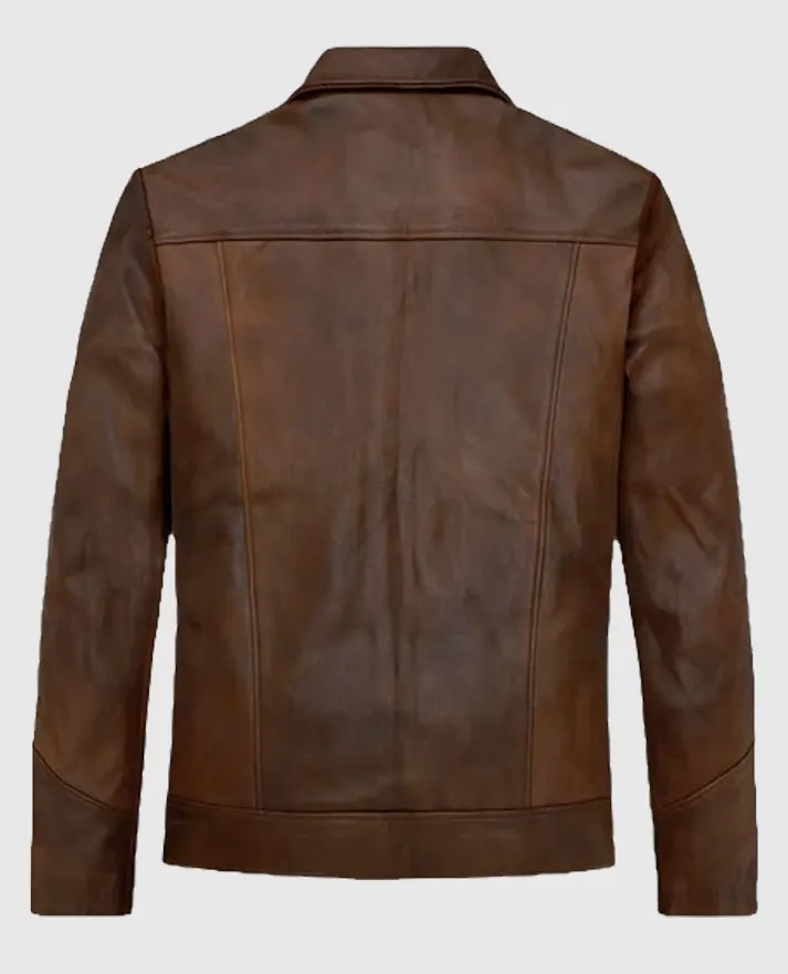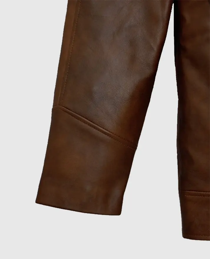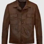 The Rick Dalton Leather Jacket, inspired by Leonardo DiCaprio’s look from Once Upon a Time in Hollywood, is crafted from premium sheepskin leather for durability and style. It features a lapel-style collar, button closure, and long sleeves with open hem cuffs for a classic, tailored fit. The rich brown color adds a touch of sophistication, making it perfect for both casual outings and formal events.