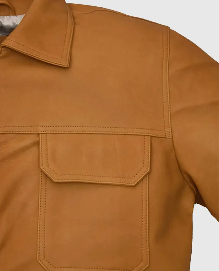 Establish your dashing persona in style with this stunning, eye-popping leather jacket that offers a smart option to create a style statement. The jacket you are watching is inspired by the popular TV series Emily In Paris, in which the popular figure Lucas Bravo plays the role of Gabriel and grabs everyone’s attention while wearing this jacket. This jacket is a fabrication of sheepskin leather To give you a fashionable appearance. It has a stylish shirt-style collar and a font-style button closure, making the jacket look chic.