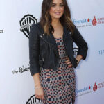 This quilted jacket is inspired by Lucy Hale’s look at the T.J. Martell Foundation Family Day in Studio City. This black leather moto jacket brings attitude with intention. Crafted from premium sheepskin leather and lined with soft viscose, it’s a luxurious armor for the fearless. Quilted shoulders and arms create texture and depth, while side buckles and asymmetrical zip details serve pure biker energy. The slim cut, notch lapel collar, and sleek zip cuffs seal the look. Throw it over a hoodie and skinny jeans for a street-ready vibe, or pair it with a satin dress and boots for a glam-punk contrast.