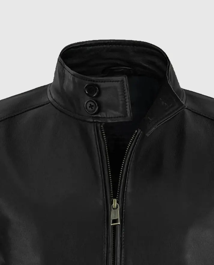 Wear this stunning men’s black cafe racer leather jacket to make a buzz among your haters. The jacket also holds an elegant sheepskin lambskin leather material with its attractive colour and fabulous design. Grab this masterpiece and be the attention of everyone. The mentioned leather jacket is fabricated using genuine quality material. You will find an inner viscose lining inside it, while the outside carries a front zip fastening with a stylish stand-up collar. Moreover, it accommodates full-length sleeve zipper cuffs, and the product is exclusively available in iconic black.