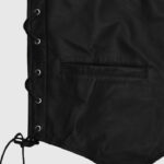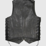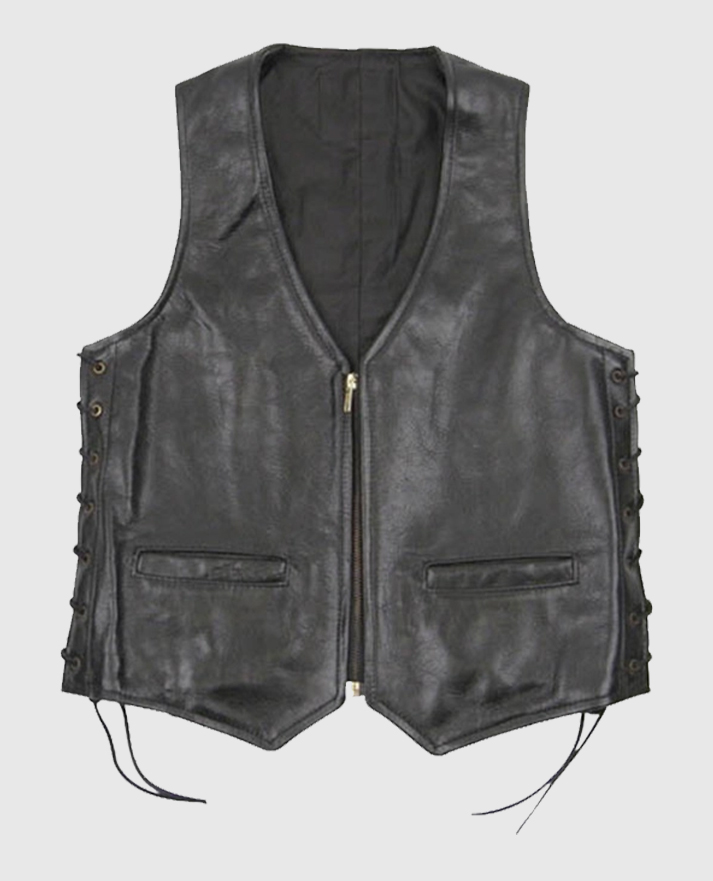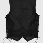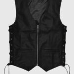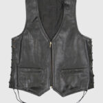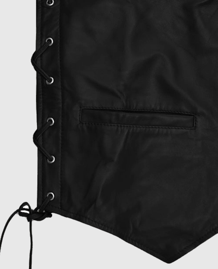 This men’s black laced leather vest is a sleek and versatile piece made from sheepskin leather, offering a refined look. It features a zipper front closure, a V-neckline, and two external pockets, delivering style and functionality. The lace-up detailing on the sides adds a bold touch, making it perfect for layering over casual tees, flannel shirts, or hoodies for a laid-back biker look. Whether you’re heading to a concert or a ride, this leather vest is a must-have for a timeless and edgy wardrobe